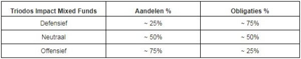 De beleggingen van de fondsen worden bepaald aan de hand van een geïntegreerde financiële en duurzame analyse die gebaseerd is op de duurzame transitiethema’s van Triodos IM, een top-down investment outlook, bottom-up portefeuille afwegingen, en met inachtneming van de Triodos brede minimale standaarden op sociaal en ecologisch vlak.