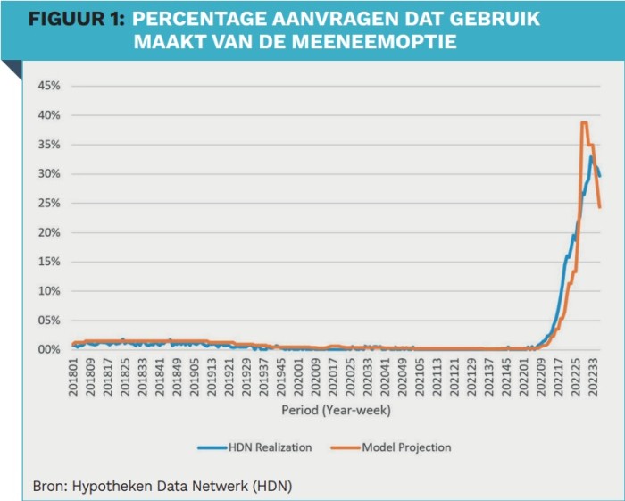 Embedded options in Dutch residential mortgages, such as the relocation option (also known as the “transfer option”), pose an interesting challenge for the risk management of a mortgage portfolio. This option allows homeowners to transfer their existing mortgage to a new home, which is particularly advantageous when market interest rates have risen. Historically, however, little use was made of this option: between 2002 and 2022, interest rates fell almost continuously, meaning that the transfer option was rarely advantageous.